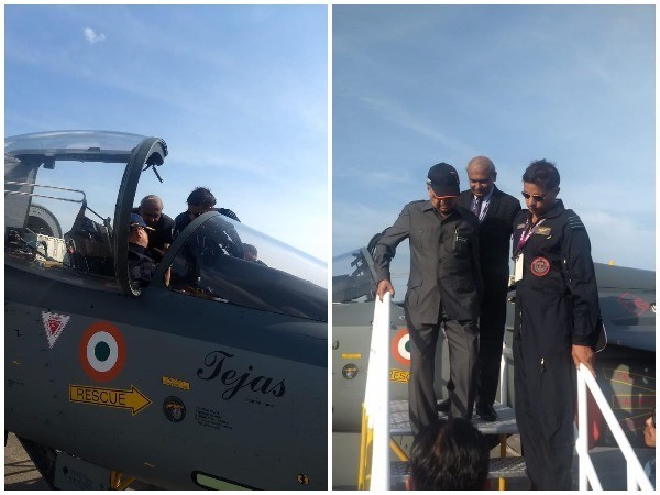 He also sat in a Tejas fighter jet at the exhibition. The world's lightest supersonic fighter is taking part in aerial displays for the first time at LIMA '19.